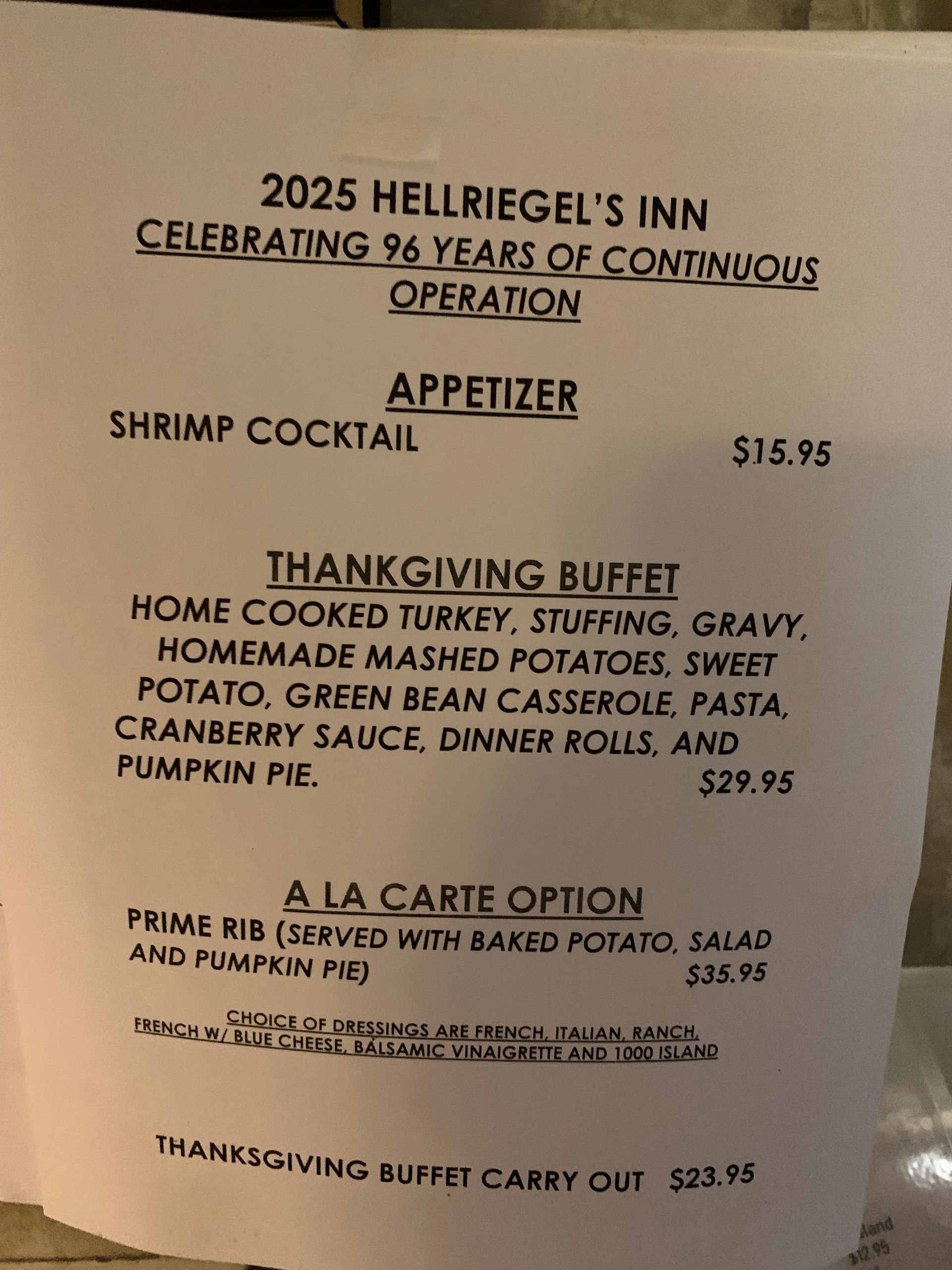 HELLRIEGEL'S INN has a history of over 80 years of experience in fine dining and hosting distinctive and elegant events such as Senator John F. Kennedy's breakfast rally in September of 1960.